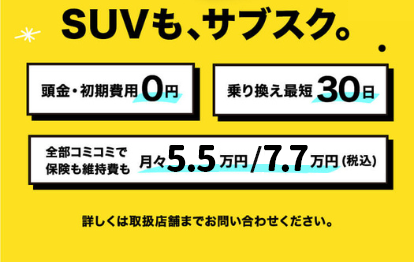 SUV乗り放題の月額定額制サービス